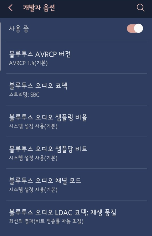 2) 설정-> 개발자 옵션 -> 블루투스 관련 데이터 기본으로 세팅