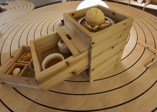 3단 BOX라고 불리는 이 친구가 층층이 모두 디저트를 담고 있습니다.