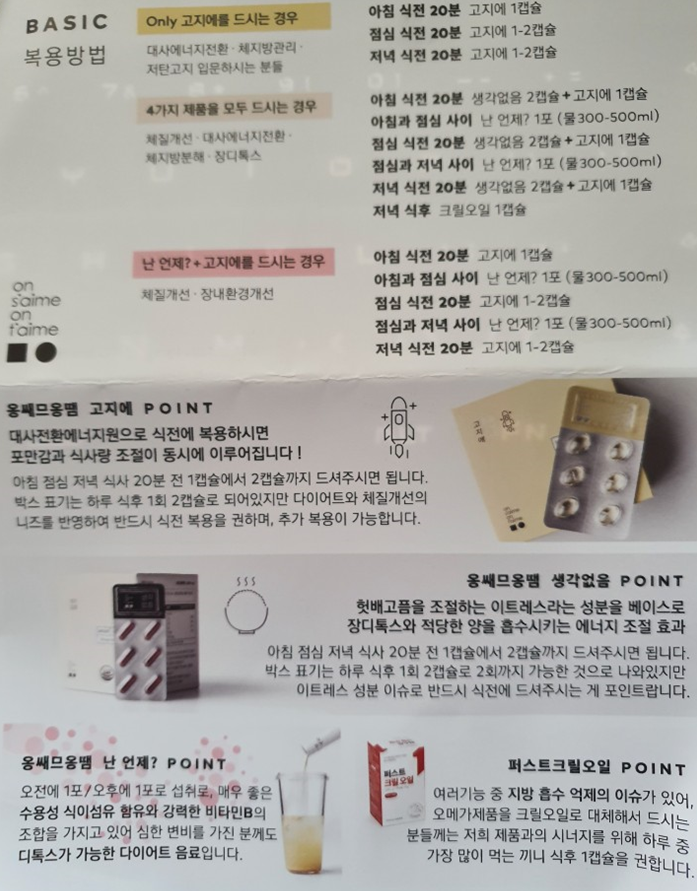 제품을 구매하시면 어떻게 복용하면 되는지 간단한 사용 설명서 및 고지에 외 다른 제품들을 같이 홍보하는 것으로 보이더라구요.