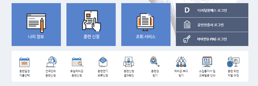 예비군 홈페이지가 깔끔하게 사용할 수 있게 되어 있어 필요하신 정보를 손쉽게 찾아보실 수 있으실 거 같습니다.