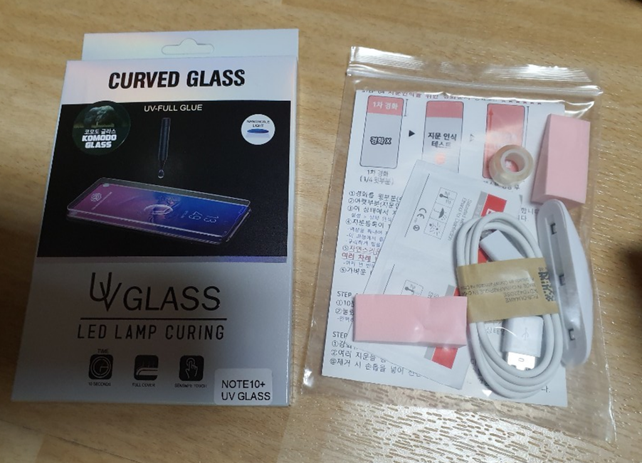 하지만, 오늘 제가 추천 드릴 제품은 경화제를 사용한 강화 유리 제품 입니다. 에지가 있는 제품은 언제나 잘 떨어지거나 접착이 불안한 경우가 있을 수밖에 없습니다. 유리 자체가 커브 하면서 동시에 접착까지 잘되기가 쉽지 않은 형태로 보입니다. 그로 인해, 경화제라는 첨가액을 통해 종 더 강력하게 부착하려고 하는 것으로 보입니다. 그것에 저도 공감하며 이번에는 조금 어렵더라도 한 번 도전해 보았는데요. 역시 만만치 않은 제품입니다. 일부로 1+1 제품을 구매하길 잘했다는 생각이 듭니다. 어차피 잘 못되면 한 번 더 진행해보자는 생각으로 구매 한 거기 때문에 망쳐도 아무런 지장이 없을 거라는 마음가짐 때문인지 첫 번째는 역시나 바로 실패를 했네요.