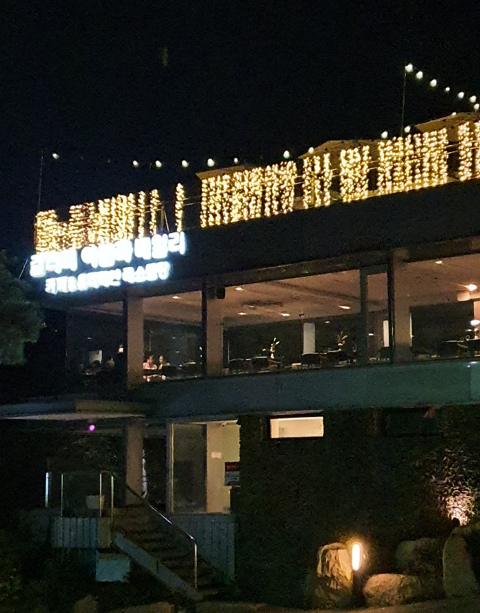 반짝이는 전구들이 하염없이 이쁘게 구성되어 있습니다. 식당의 콘셉트는 모든 게 할로겐으로 뒤덮인 노란색 전구들로 이쁘게 되어 있는데 왠지 모를 어둠에 이쁜 불빛들이 반짝이니 너무 좋네요. 마치 반짝이는 별 같이 너무 많이 있어서 눈이 아프더라고요. 각도 잘 생각해서 찍으면 진짜 이쁠 거 같습니다. 결혼식장으로도 사용하는 곳이라 그런지 좋은 장소를 찾으면 왠지 모르게 잘 촬영될 거 같습니다.