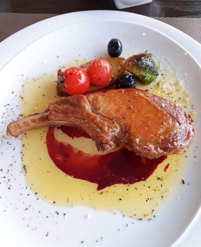 메인 Dish인데 이베리코입니다. 적절하게 구워진 뼈 있는 이베리코가 마치 삼겹살의 맛을 그대로 간직하면서 좀 더 느낌적인 느낌으로 다가오는 와인 소스와 함께 적절한 올리브 오일 위에 스즈닝을 통한 깔끔한 조화와 짭조름한 맛을 가지고 있어 어떠한 간도 필요치 않은 고기 본연의 맛을 즐길 수 이씃ㅂ니다. 구운 채소와 방울토마토가 있는데요. 역시 무엇이든 한 번 구워지면 맛이 있습니다. 단지 올리브가 2개 있는데 혼자 단독으로 먹기에는 무언가 힘든 거 같고 버섯은 마치 고기보다 더욱 고기 같은 식감을 표현하고 있어 그 맛은 이루어 말할 수 없습니다.