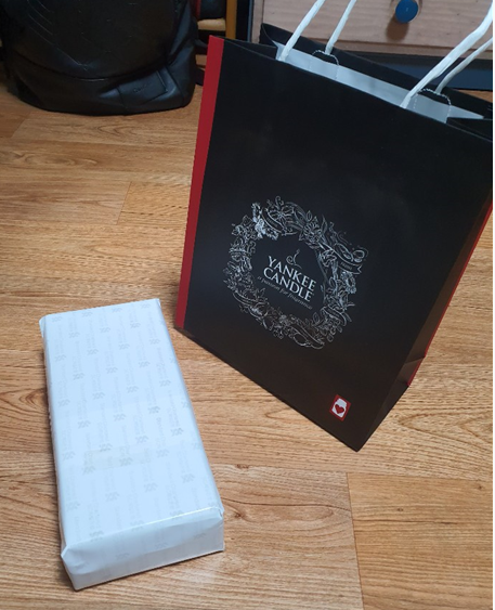 지금 적금을 만드는 분들을 대상으로 선물세트를 제공하여 주고 있어서 달에 10만원 짜리 선물세트를 받아왔습니다. 카드 만들러 갔다가 계좌, 적금까지 만들었네요. 10만 원에 연이자율 1.6% 12개월짜리 아이템이기 때문에 이자보다 양키캔들이 더 비싼 느낌이니 만드시면 좋을 거 같습니다. 만약 SC포장지를 제거하면 마치 새것과 같기 때문에 타인에게 선물을 할 수 도 있는 방법을 은행 직원분이 알려주시네요. 역시 참된 직원