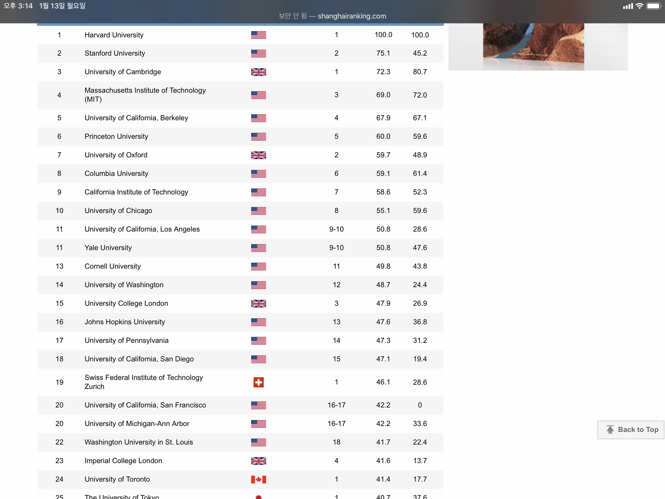 ARWU 사이트 - 대한민국 서울대는 101 등수에 보여지고 있어 다소 생각의 차이가 많이 달라 보입니다.