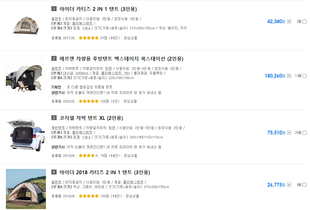 여름철 캠핑을 위한 2인용~3인용 텐트 추천