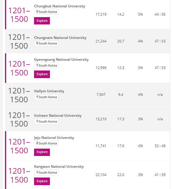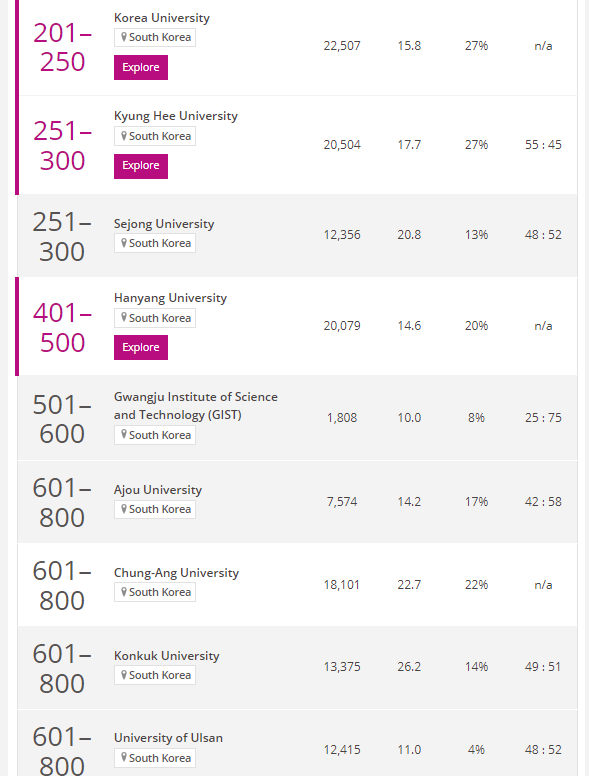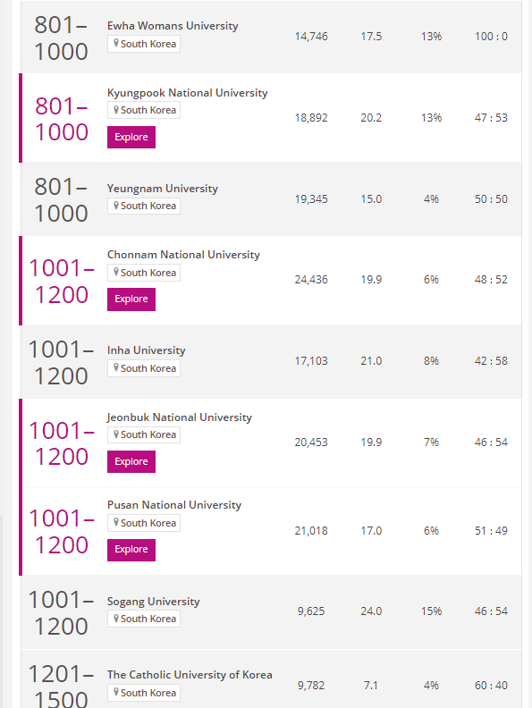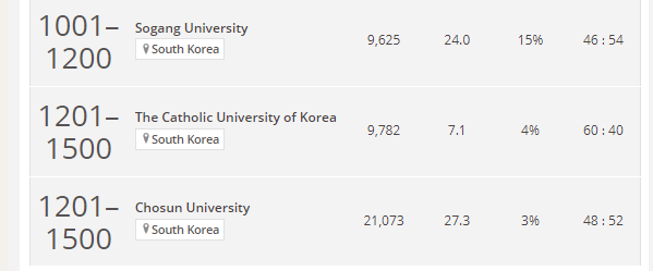 제가 랭킹을 찾아본 사이트는 THE = times higher education