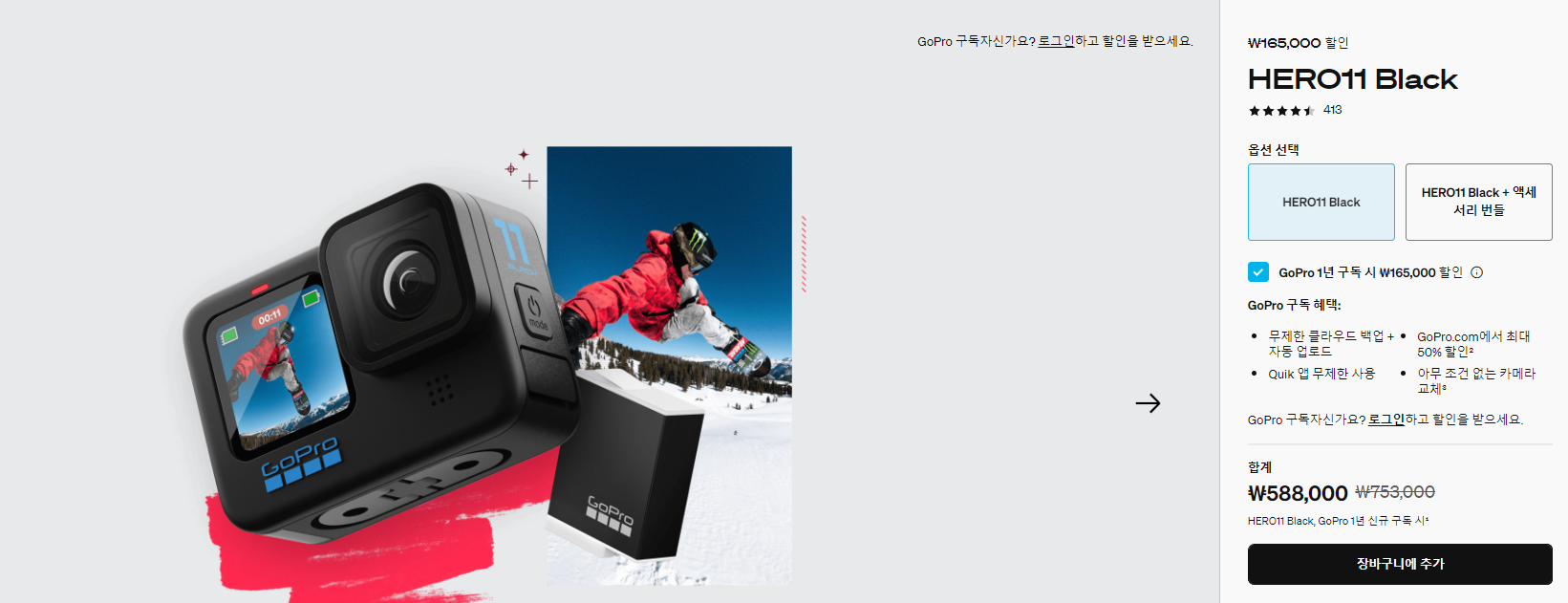 할인팁 2 ) 고프로 구독을 하면 구독할인가를 통해 구입이 가능합니다.