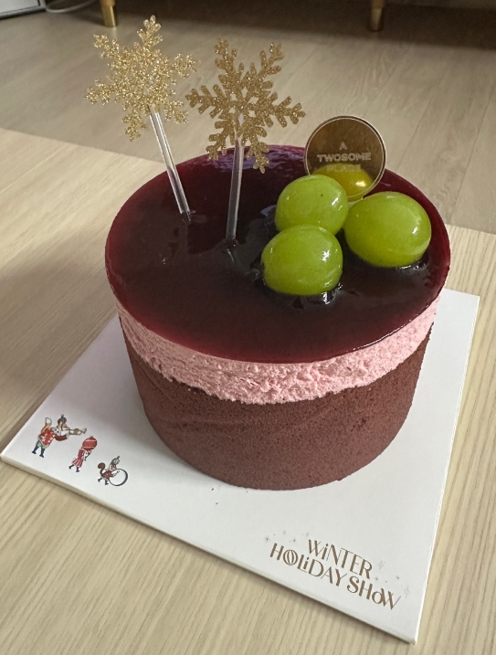 저가 크리스마스때 먹었던 제품은 바로 위에 사진과 같이 투썸와인치즈무스 제품인데요. 위에 푸딩 같은 느낌이 레드와인 맛이 강하게 나서 와인 케이크를 먹고 있다는 느낌을 받을 수 있어 아이들과 같이 먹기보다는 어른들의 케이크라고 말씀드리면 더 좋을 거 같네요.