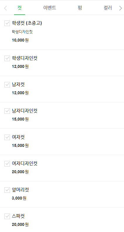 펌은 가격이 표 가 너무 많아요 캡처 힘들어요 예약 들어가셔 보셔요.