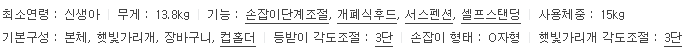 기능: 8kg대의 가벼운 무게, 이지 폴딩, 항균처리 시트, 4단계 등받이 각도 조절