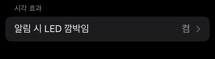 설정 -> 손쉬운 사용 -> 오디오/시각 효과 -> 알람 시 LED 깜빡임