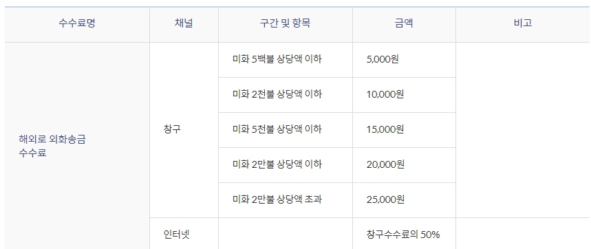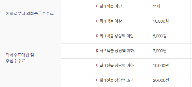 해외로부터 외화송금수수료 진행 시 인터넷을 통해 진행될 시 50% 수수료 감면이 있으니 10,000원 기준으로 50% 되면 5,000원으로 위에 우리은행과 동일한 비용이라고 생각하시면 됩니다.