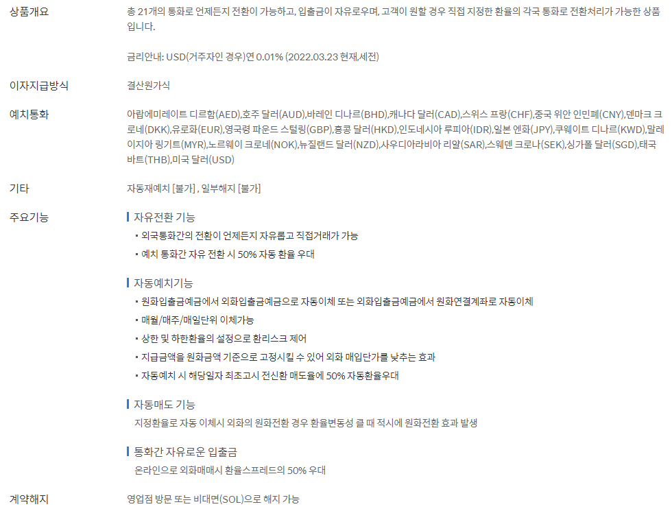 외화 체인지업 예금 상품에 대한 설명 및 신한은행 수수료 안내내용을 아래와 같이 공유드립니다.
