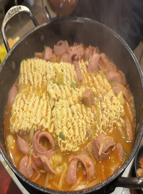 기본적으로 부대찌개를 시키시면서 나중에 추가로 햄사리랑 육수를 추가하고 + 면사리를 추가하면 약간 2번 먹는 느낌이 나서 성인 남자가 1인분 먹으면 살짝 부족할 수 있어서 팀원들이랑 갈 때는 어것저것 많이 추가해서 먹는 스타일인데 밥은 무한으로 제공되고 있어서 탄수화물 좋아하시는 분들은 많이 퍼서 드시면 좋을 거 같긴 한데 막사 또 자리에 앉게 되면 귀찮아서 잘 안 움직이게 됩니다.