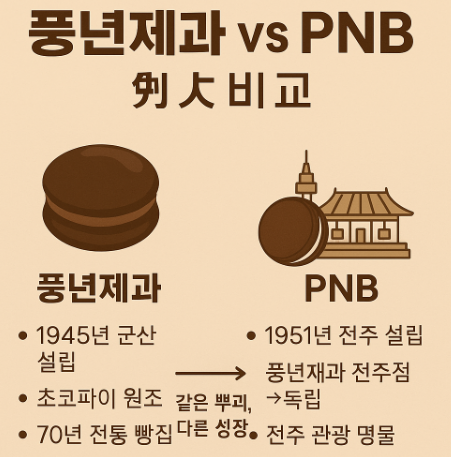 👉 즉, PNB는 전주 풍년제과에서 독립해 성장한 브랜드로, 지금은 전주를 대표하는 빵집이 되었습니다.