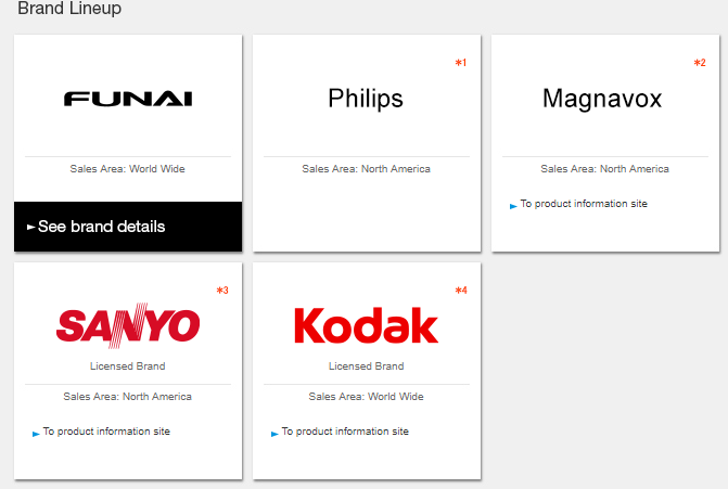 Funai, Philips, Magnavox, Sanyo, Kodak