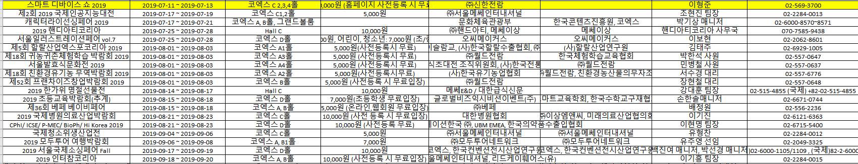 2019년도 국내 박람회 리스트