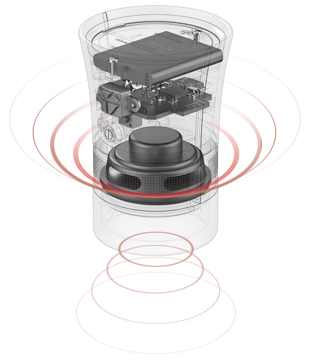 양쪽에 스피커가 있어 Left, Right를 정확히 구별하고요. 뒤에 패시브 라디에이터가 있어서 이건 혁신이죠. 밋밋한 사운드에 저음을 더하려는 스피커에 대해서 좀 안다는 회사라 이렇게 만든 거죠.