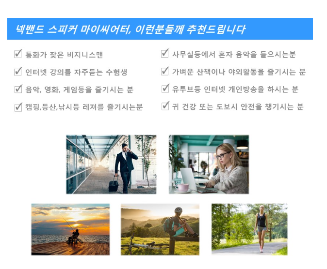 사용처 3: 자전거 나 등산할 때 무거운 스피커 따위 갔다 버리시고 목에 그냥 하나 쓱 하시고 가시면 진짜 신박합니다. 어차피 생활 방수 정도는 무난하게 진행되는 거라 문제없이 땀 정도는 커버하겠죠. 열띠미 운동하는 당신을 위한 선물을 하나 해주시는 것도 좋은 방법인 거 같습니다.