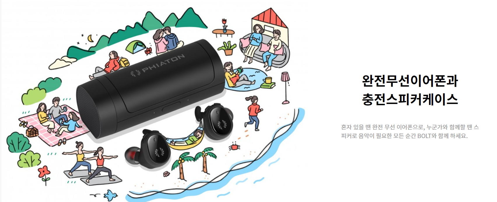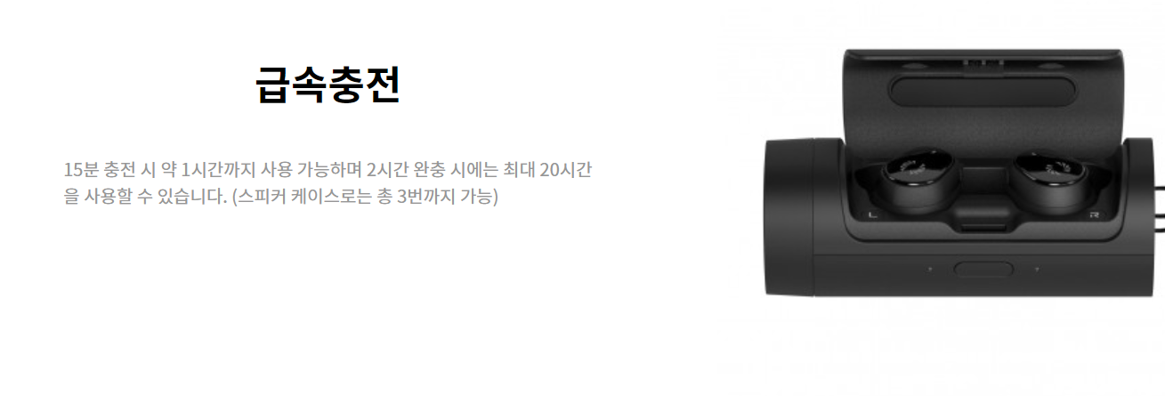 강점 1: 역시 이 제품의 핵심 포인트는 완전무선이어폰과 충전스피커 케이스가 동시에 된다는 점이지요.