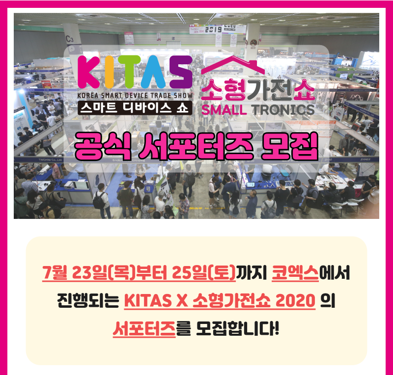 왜냐!KITAS 2019 전시회에 참가하는 기업들이 전시 기간 중 다양한 제품을 인터넷 최저가 보다 싸게 판매를 합니다. 딱 3일간 (2019.7.11(목) - 13(토))
